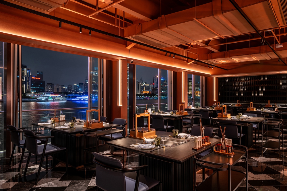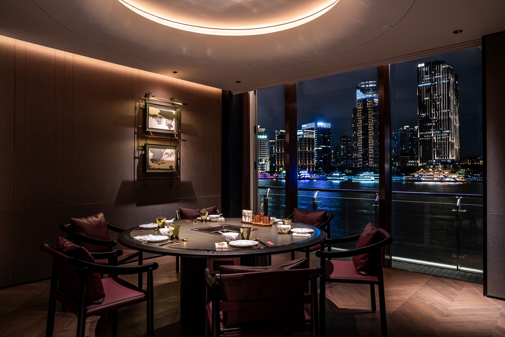 This VIP-exclusive private room is not open to the public. With a minimalist design approach, it highlights the landscape advantages and avoids excessive decoration, allowing customers to focus on the beautiful scenery outside the window. The 270-degree panoramic private room features a large floor-to-ceiling window, offering a breathtaking view of both banks of the Huangpu River, including the historic buildings of the Bund, the skyscrapers of Lujiazui, and the cruise ships on the Huangpu River.